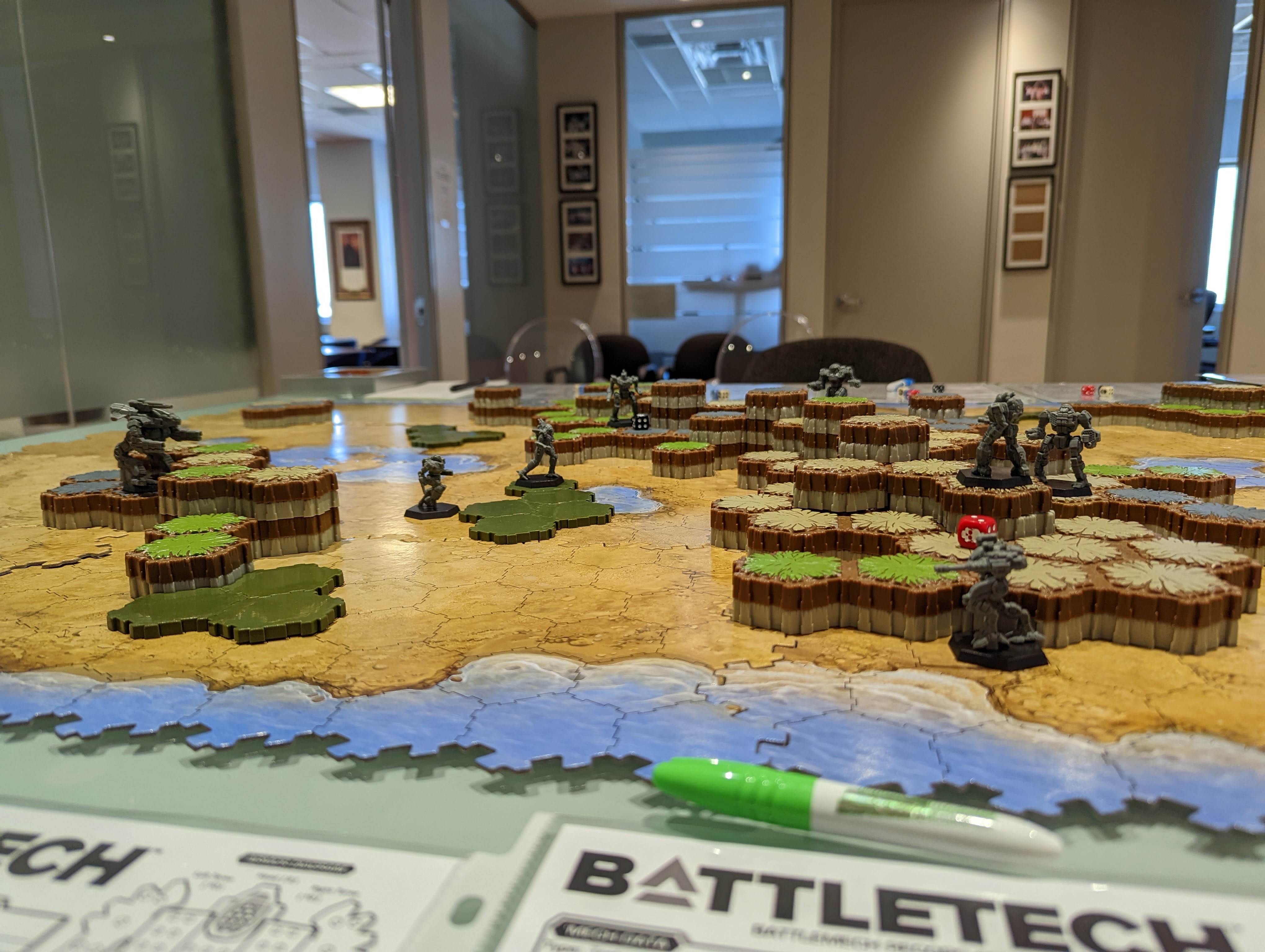 My friend and I took an afternoon to continue our education in BattleTech (both of us having just recovered from bouts with COVID). We threw together a couple 4,000 BV Lances (Introductory rules only) and setup a game.