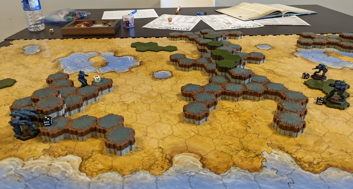 You will also notice my ‘Mechs are fully painted! Wolf’s Dragoons Gamma Regiment and Clan Nova Cat Alpha Galaxy, done by Les Mandeville.