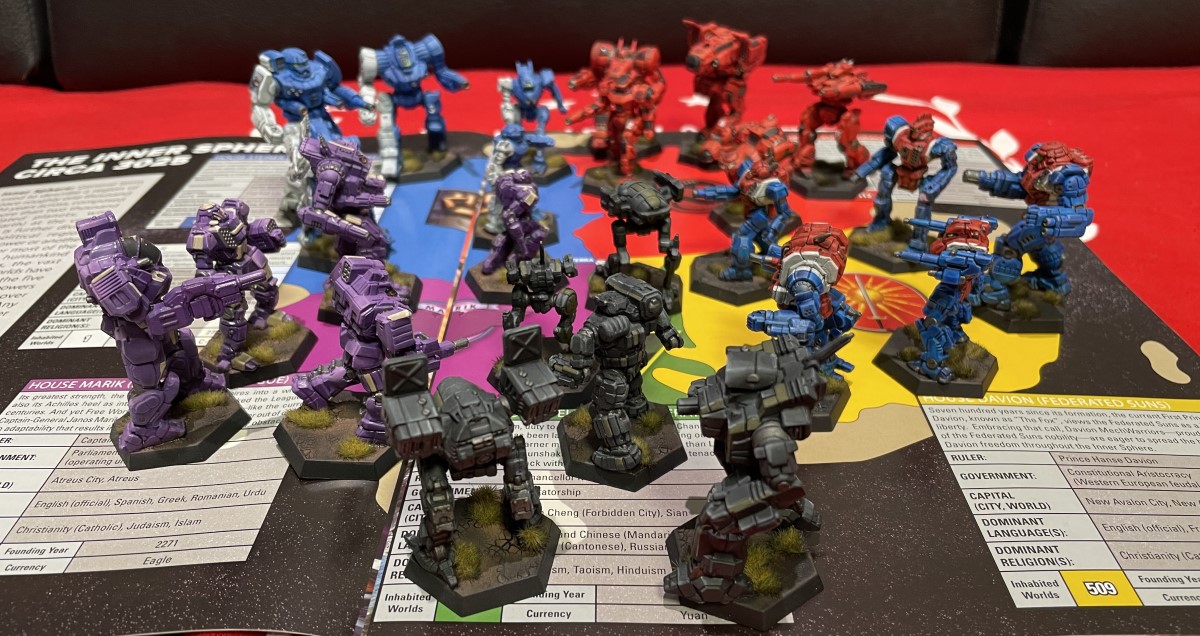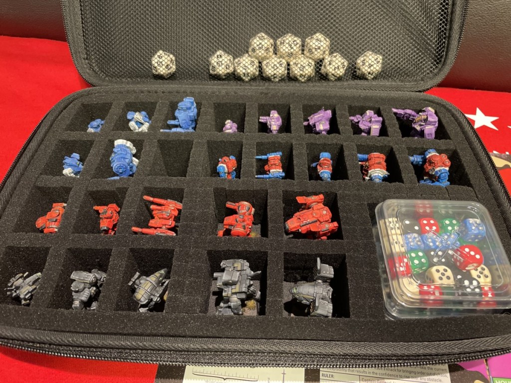 I took 25 ‘Mechs out of my Kickstarter collection and sent them off to Les to paint. Those all went into a carrying case (appropriately named MADCAT) and into a travel kit of terrain, record sheets, and rulebooks for future use with my home group. I will be looking to double up on some of these ‘Mechs for my personal units…