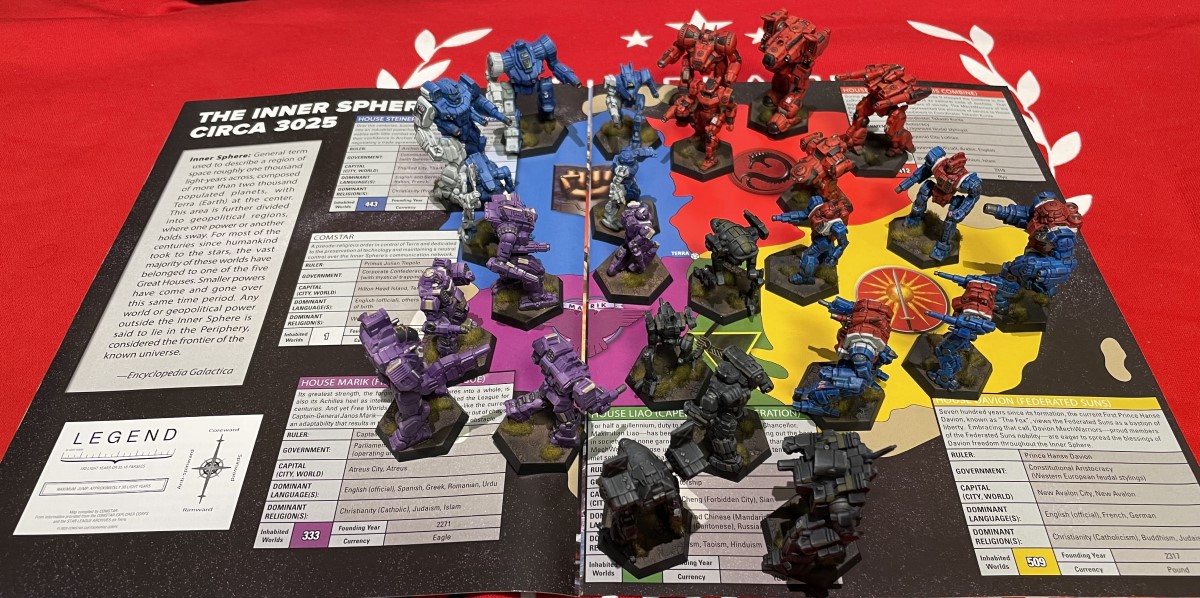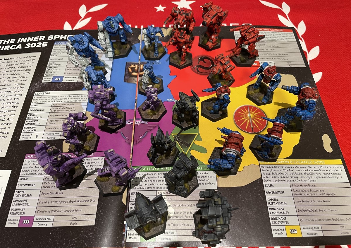 You represent a ‘Mech Company of the three signatory nations of the Kapteyan Accords, thrown together to secure a foothold (i.e. planetary assault) on Rigil Kentarus between the Lyran Commonwealth and Federated Suns. The “Kapteyn Group” is made up of the Draconis Swords of Light, Free Worlds Guard, and the Capellan Death Commandos. The planet is defended by an alliance of Lyran and FedSun forces, reinforced by their mercenary allies, the Wolf’s Dragoons.