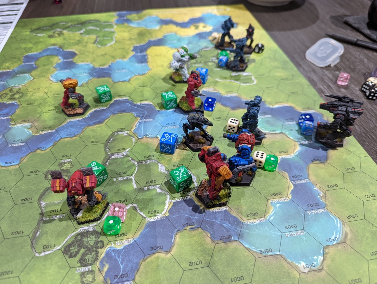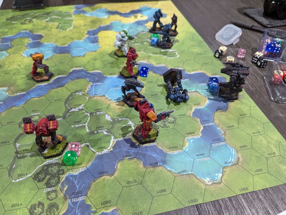 The Kapteyn forces came onto the field with the FedCom defense forces pursuing. Immediately the Kapteyn’s turned around to fight, ambushing their attackers. In the immediate melee, Kapetyn Hunchback was crippled by the concentrated fire, but in turn, the FedCom Victor was set upon. The next moments, the defense Grasshopper that stepped in to block was knocked to the ground and the Victor was cored due to an ammo explosion. The Hunchback began an orderly retreat, but the Kapteyn Raven was ravaged out in the open. Concentrating fire, the Kapteyn’s again set upon the Grasshopper, but the Wolverine was opened up and fell into the water. Compartments flooded and the pilot, Logan, was killed without being able to eject. The Kapteyn’s quit the field in a fighting withdrawal.